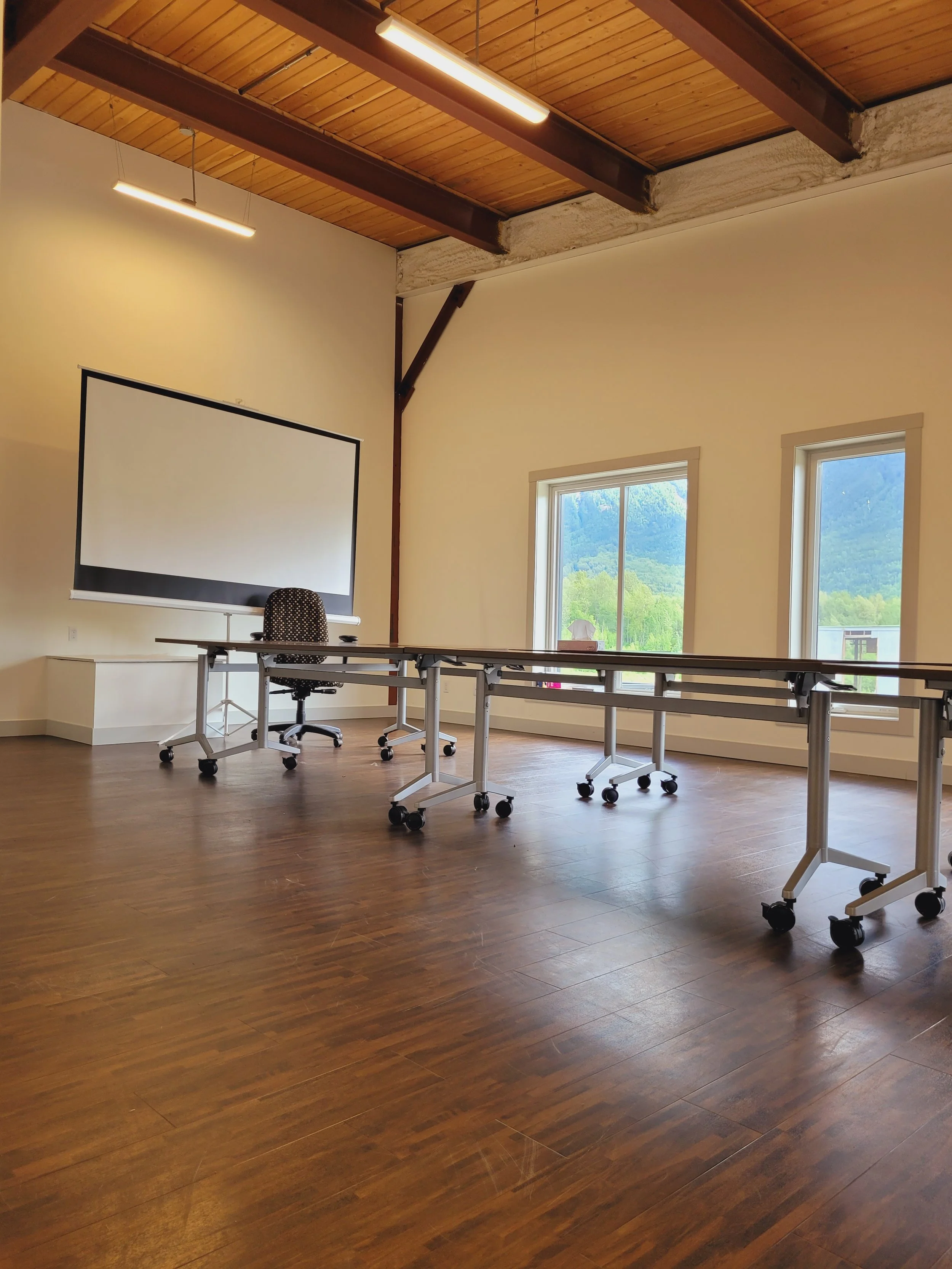 If you’re looking for a room to rent for your reception, meeting, class or seminar in the Hazelton area, contact us for a viewing or to book our room. Our location is less than an hour from Smithers with a stunning view of the Stekyooden Mountain behind our building.